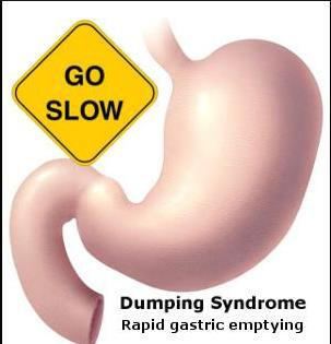 조기 덤핑증후군의 경우 대부분 음식을 빠르게 섭취하여 생기는 경우가 많으며이때 음식물이 빠르게 소장으로 내려가 소장은 음식물을 희석 하기위해 많은 양의 수분을 사용하게 되어 복통과 식은땀, 두근거림,메스꺼움,복부팽만감 등의 증상이 발생합니다